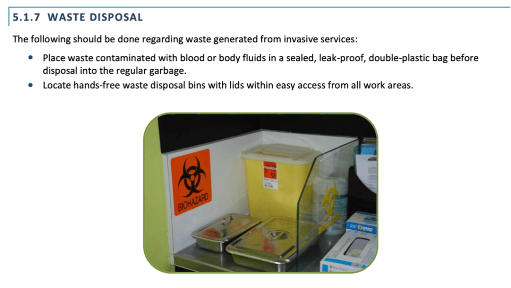 Second, to address the educational obstacle, tattooers are not actually medical professionals. We have neither the training, nor the means to accurately evaluate the clinical safety of each step within our practices. Instead, we depend on our respective certification or licensing systems to teach us what we need to know. In British Columbia, for example, one third of the government’s Guidelines for Body Modifications document details the expected methods for preparing and executing body modifications such as tattooing, but only a mere three sentences on the proper disposal of all non-sharp waste.