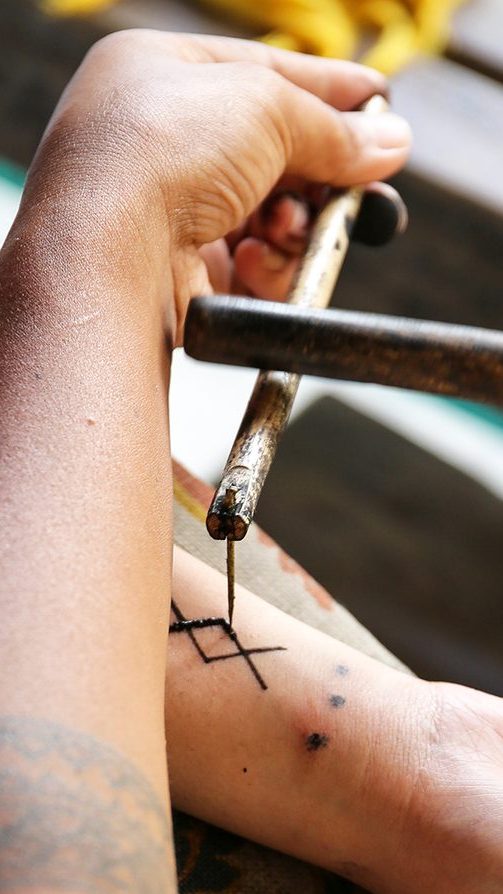 However, due to centuries of colonization that sought to eliminate indigenous cultural practices, not many people are aware of the depth and intricacies that make up these traditions. As such, even though tattooing as we know it wouldn’t exist without them, machine-free indigenous methods are consistently pushed to the outer fringes in our discussions of modern tattooing. Lumping these traditions together under the “stick and poke” label not only further diminishes their central role in the global evolution of tattooing, but perpetuates colonial violence by assimilating and erasing the wealth of knowledge embedded in each of these practices.