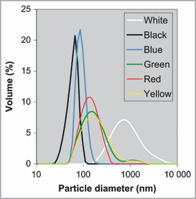 For example, the pigments in blue and black inks are small compared to other colours, and there is very little variation from this point.