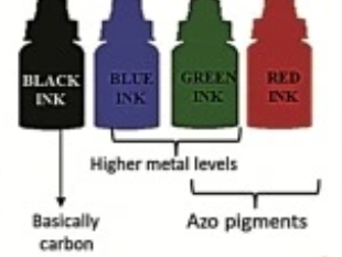 To avoid heavy metals, azo pigments have become more prevalent in tattoo inks across the colour spectrum, though they have not fully replaced heavy metals.